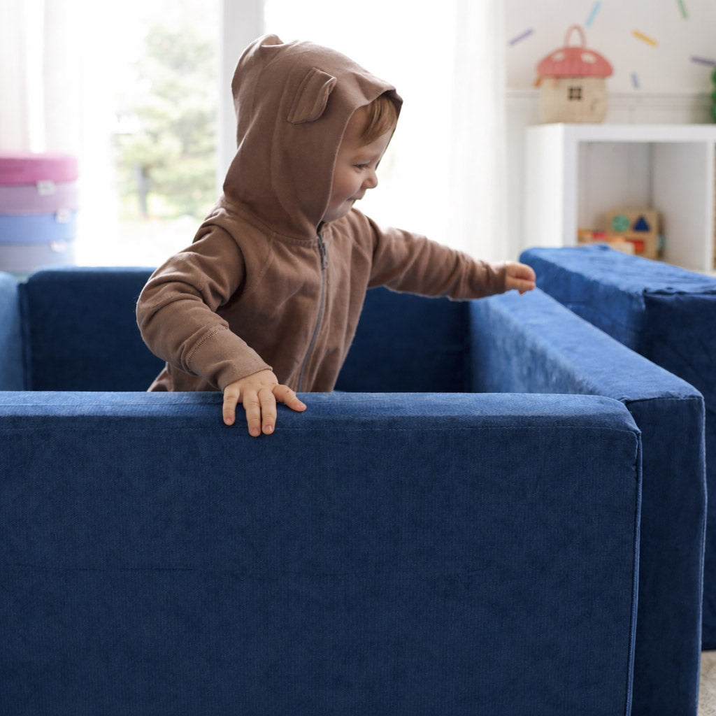 Roo & You play couches and accessories are designed for children ages 1+ and grow with them through toddlerhood and beyond. Younger kids use them for safe climbing and lounging, while older kids build more complex creations and imaginative setups.